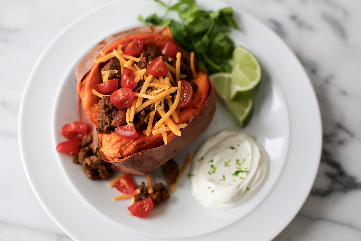 Swap tortillas for sweet potatoes to make a budget dinner that’s as simple as it is flavorful.