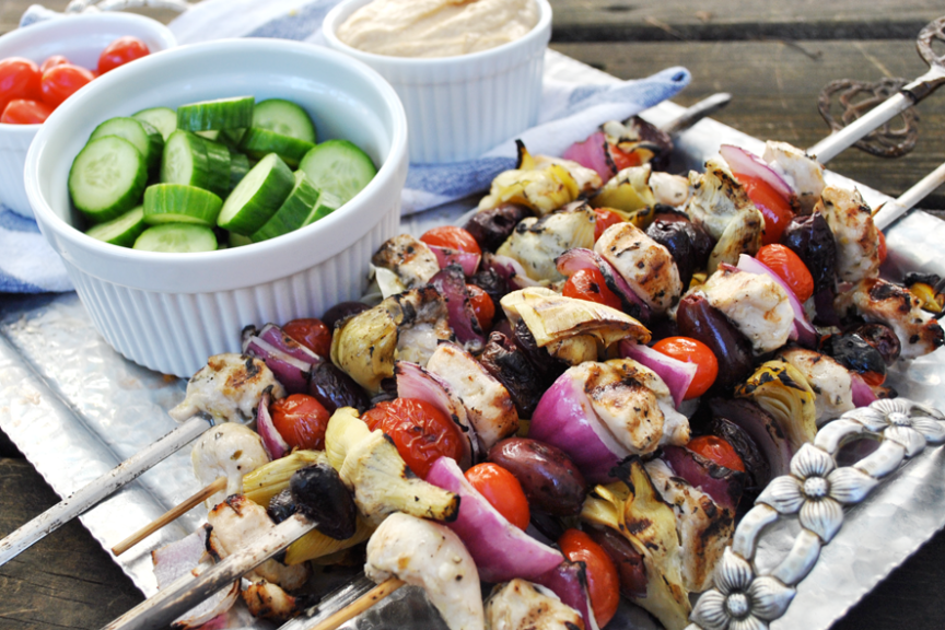 These kabobs bring a taste of the Mediterranean to your summer BBQ. Whether you choose lamb or chicken, the meat is marinated in a lemony oregano mixture that infuses each bite with vibrant flavor. Pair with artichokes, green olives, cherry tomatoes, and onions, for a distinctly Greek pop.