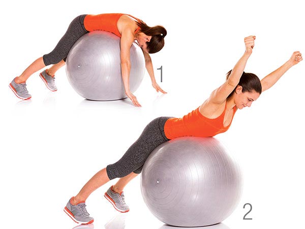 - Raise one arm and the opposite leg straight up to shoulder height.