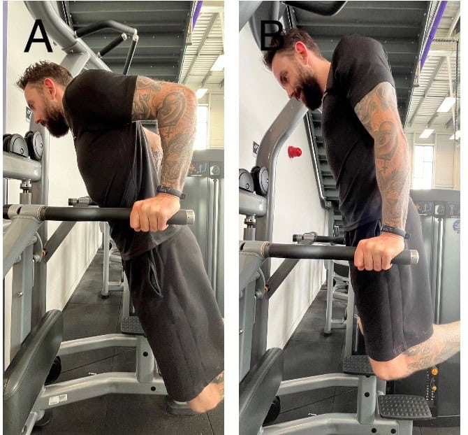 Notes: Find parallel bars or use a sturdy bench. Place your hands on the bars or bench, fingers facing forward. Lower your body by bending your elbows until your upper arms are parallel to the floor. Push back up, engaging your triceps